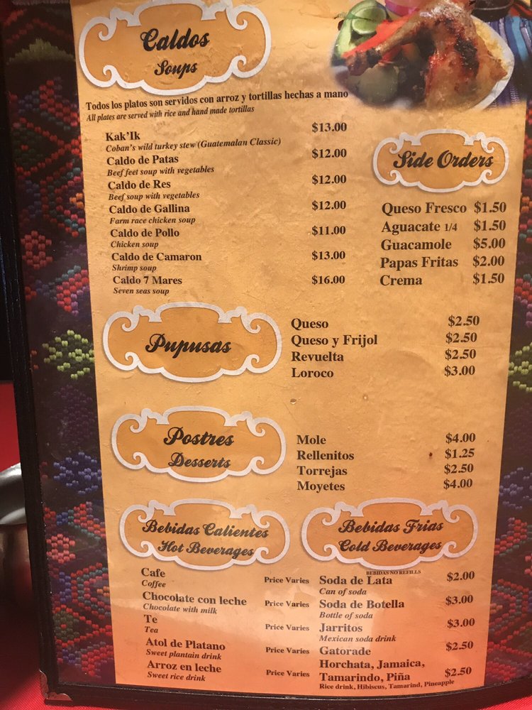 Mi Cocinita Chapina Menu